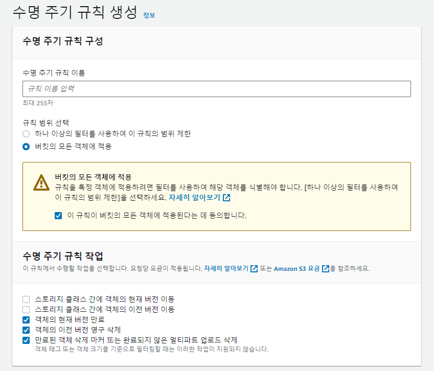 => 수명 주기 규칙생성 후 버킷 비우기 작업이 정상적으로 수행되는 것을 확인.