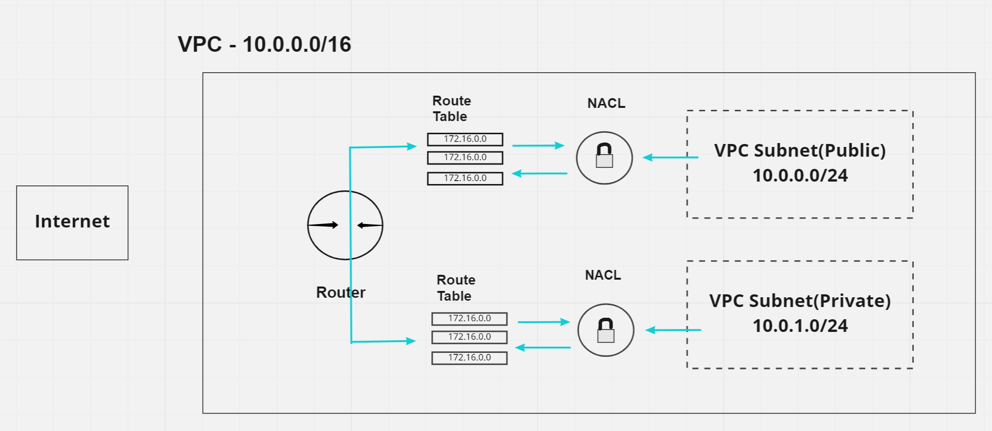 위의 과정을 끝마친 내용의 결과물은 이러하다. NACL은 자동적으로 생성되는 부분이다. 아직 Gateway에 대한 설정부분은 해주지 않은 상태이다.