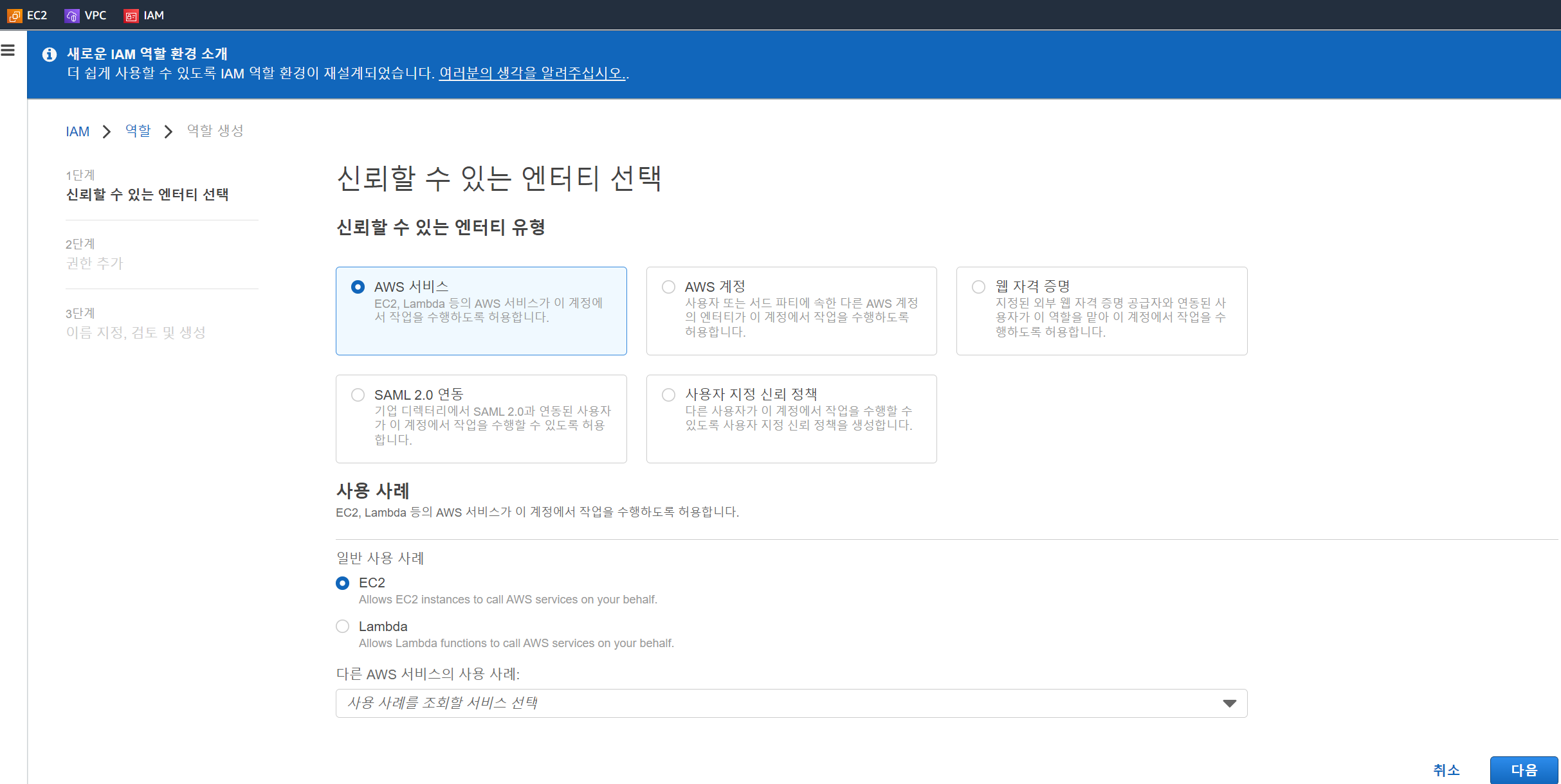 먼저 S3에 접근할 수 있는 역할을 가진 권한을 설정해주어야한다.