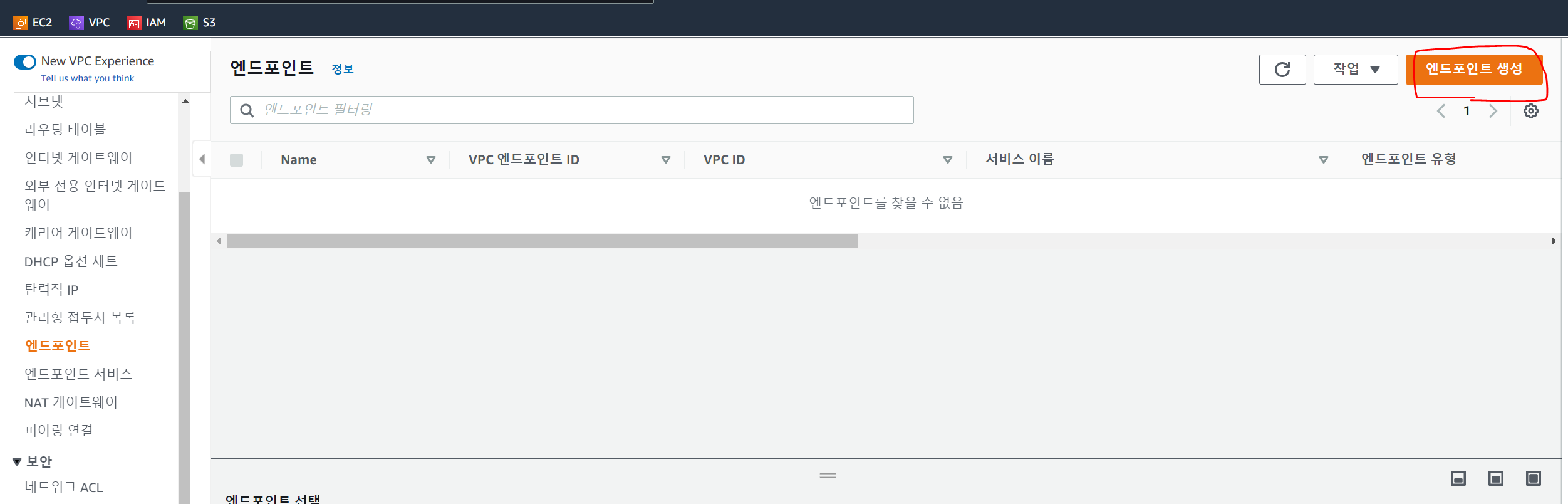 한편 endpoint 설정을 하려는 이유는 route table에서 트래픽이 노출되지 않기 위함이다.