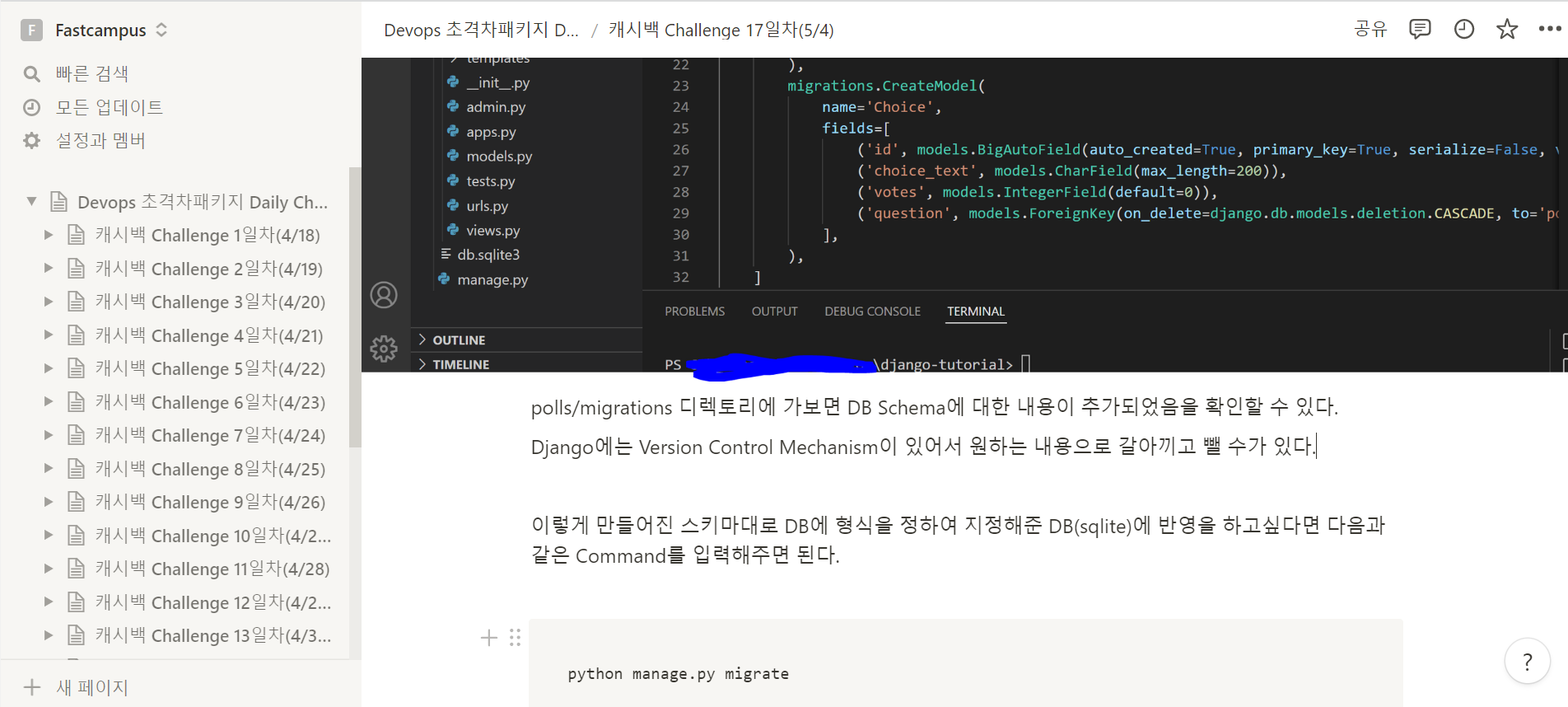 polls/migrations 디렉토리에 가보면 DB Schema에 대한 내용이 추가되었음을 확인할 수 있다.