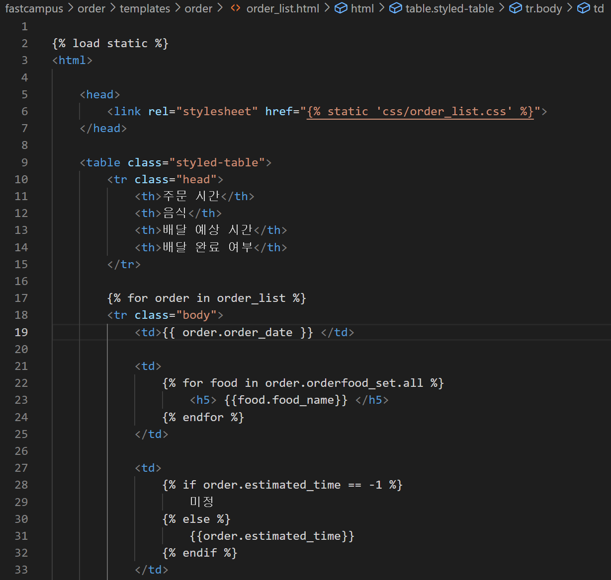 먼저 order/static/css 폴더까지 디렉토리를 생성해준다.