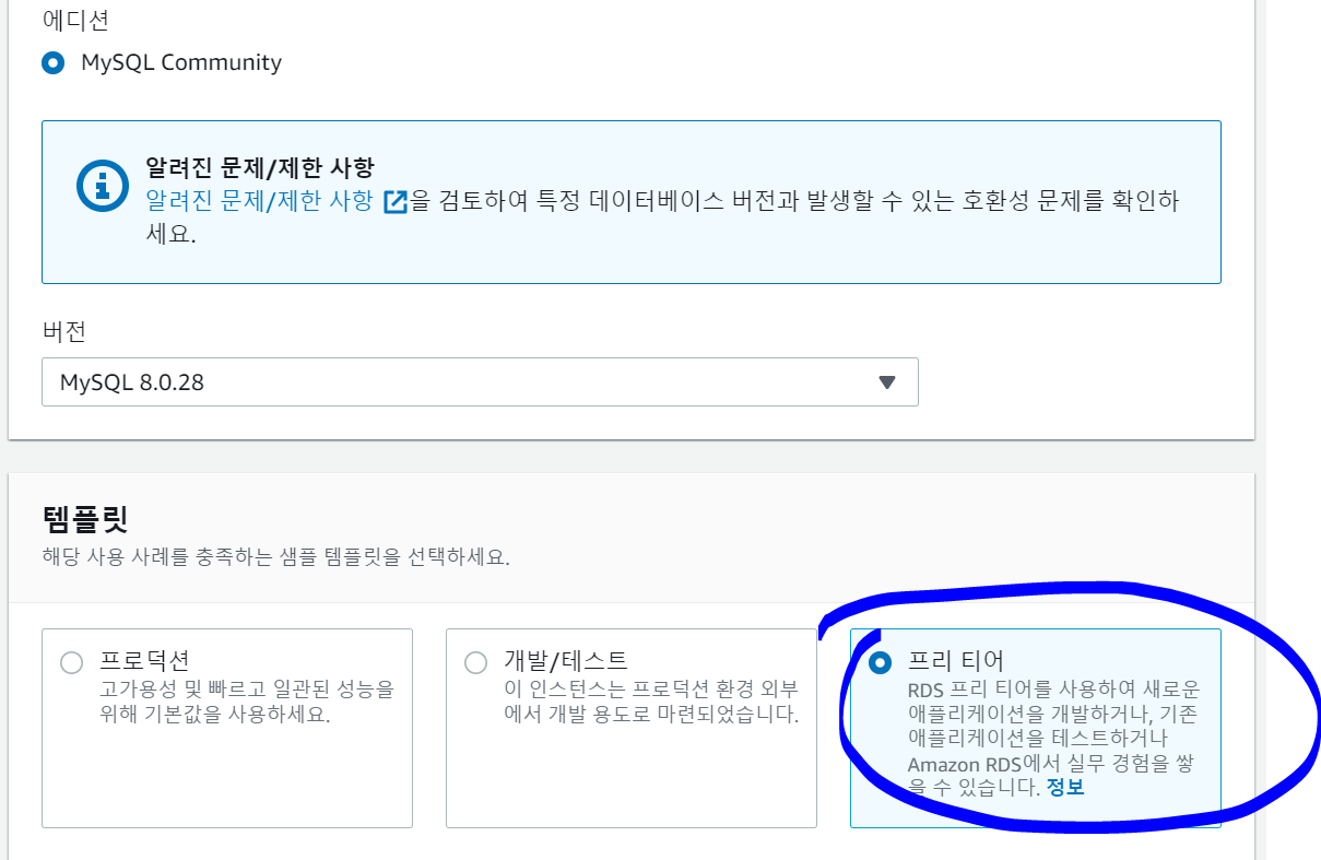 과금이 발생하지 않도록 프리티어로 설정해준다.