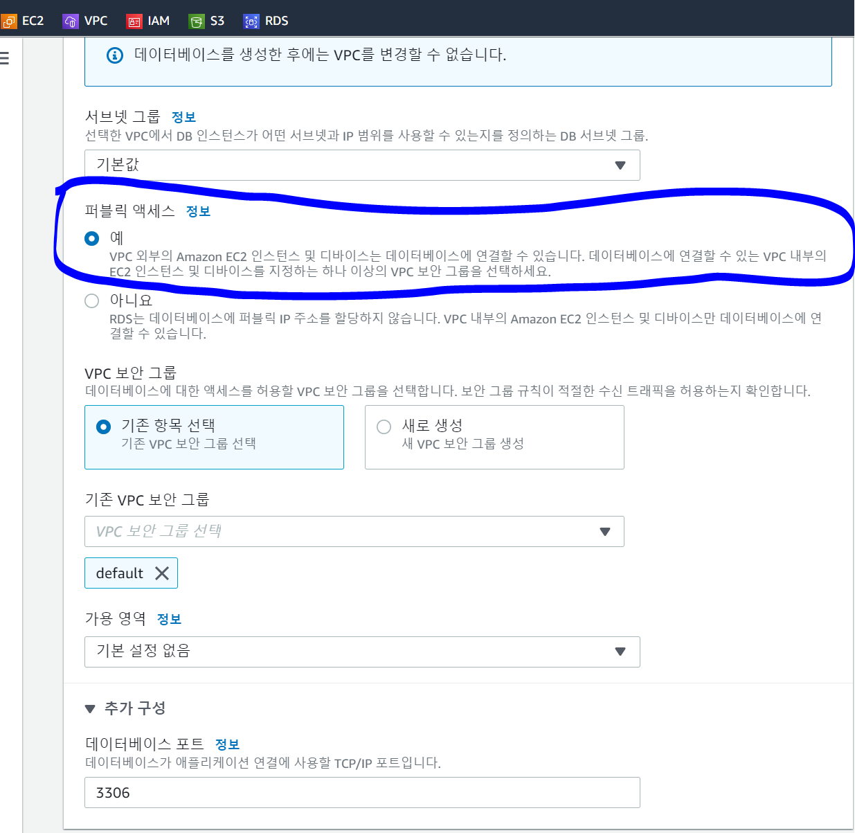 앞서 RDS 생성할때의 설정들을 반영해준다.