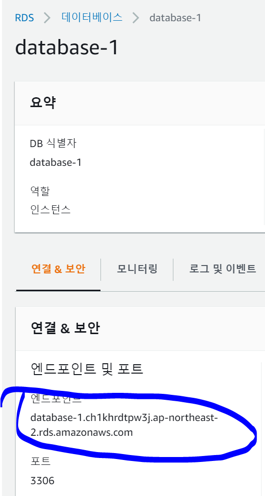 이때 host에는 aws서비스의 엔드포인트 항목을 적어주면된다.