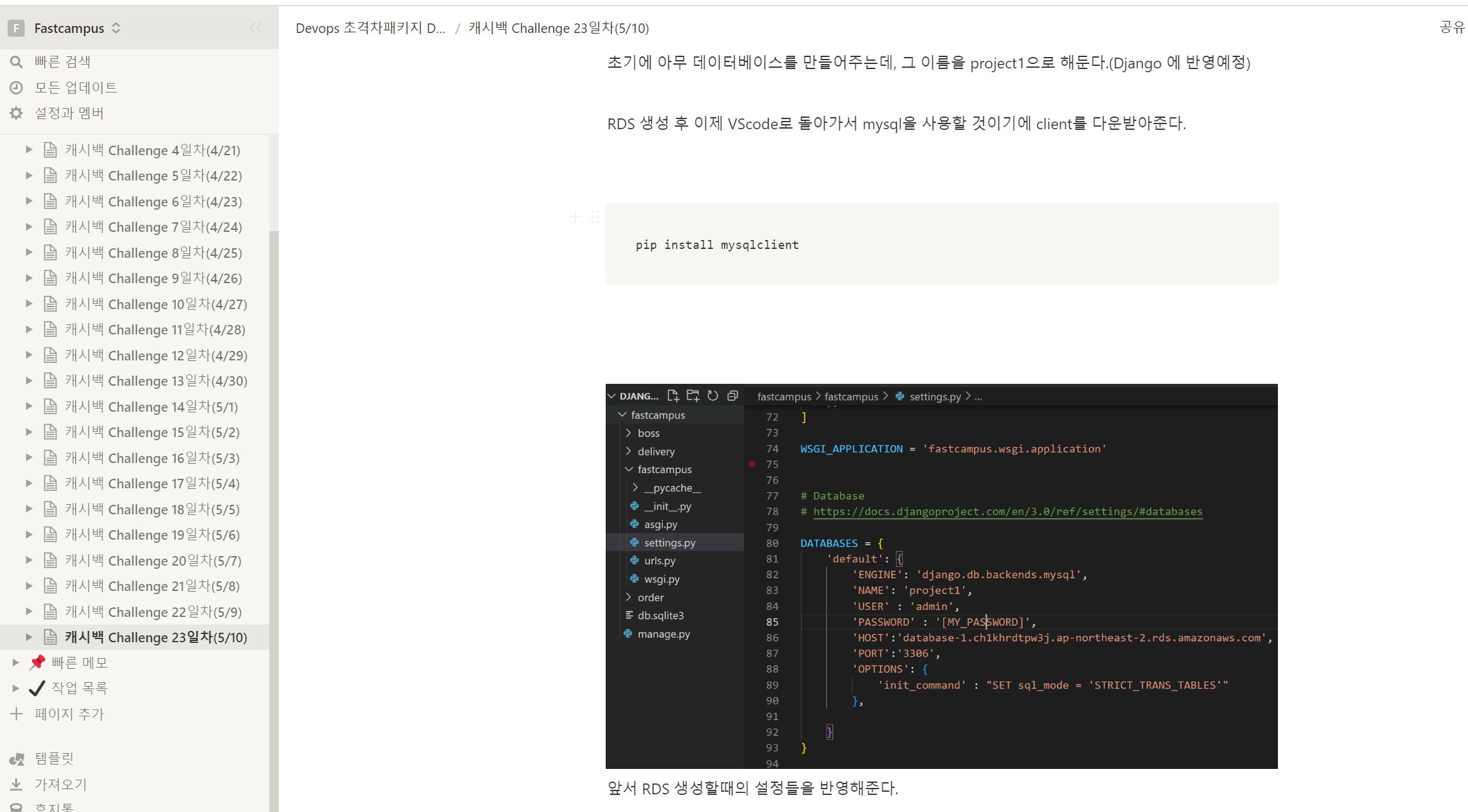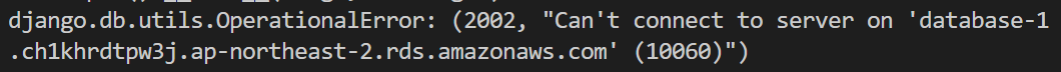 Amazon RDS 서비스와 연동하는 부분의 클립을 복습하고 새로운 클립을 수강하는식으로 챌린지를 진행하였다. Django에서 migrate 명령어를 실행할때 'django.db.utils.operationalerror' 가 발생하였었는데, 해당 문제를 AWS 메뉴얼이나 다른 개발블로그들을 통해 여러 방법을 시도하여 해결하였다. 그중에 원인이었던 내용을 간단하게 포스팅하려고 한다.