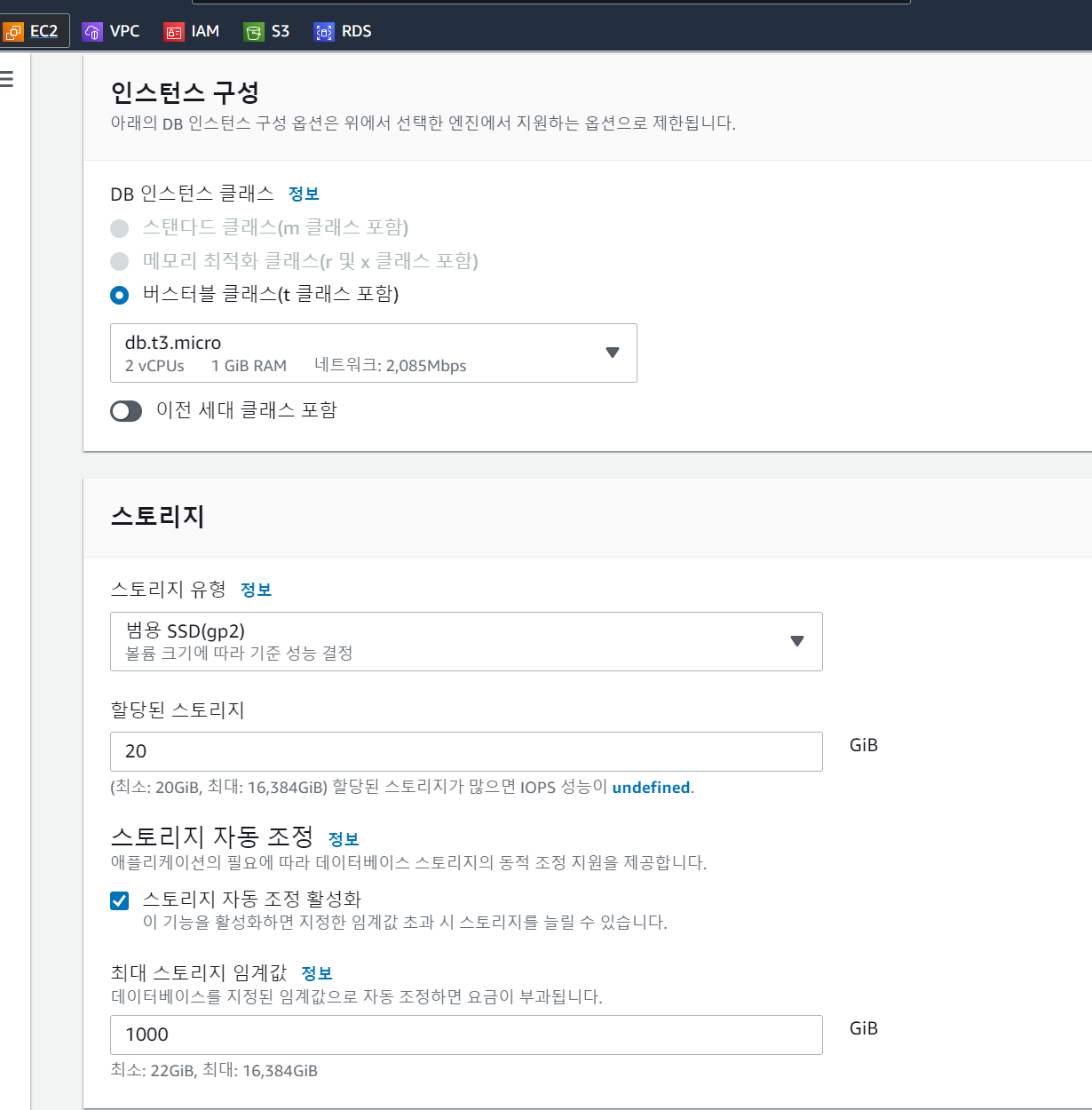 스토리지는 프리티어를 사용하기에 자동으로 할당되어있다.
