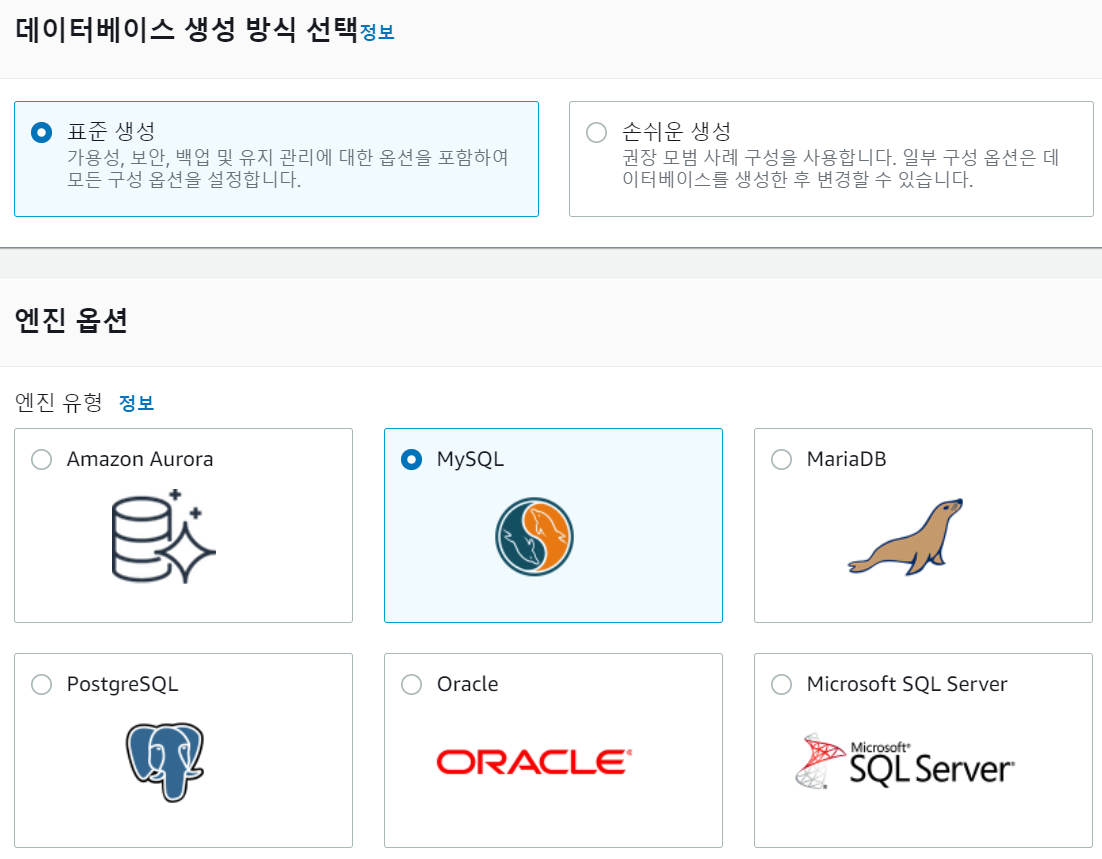 Django에서 RDS를 사용하기 위해서는 우선 AWS RDS서비스에서 DB를 하나 생성해주어야한다. AWS의 RDS 서비스에서 데이터베이스 생성에 진입해준다.