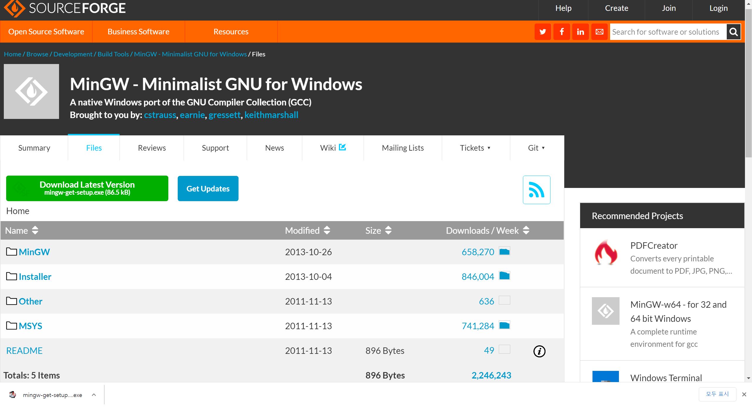 4.아래 사이트에 접속해 MinGW를 Download 후 Install해준다.