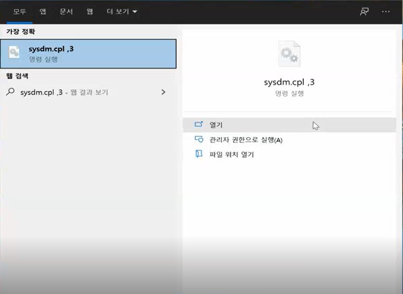 윈도우 창에 sysdm.cpl ,3 을 입력한다. ('시스템 환경 변수 편집' 이라고 검색하여도 무방함)