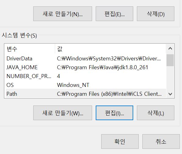 PATH변수를 찾아 더블클릭하거나, 편집을 누른다.