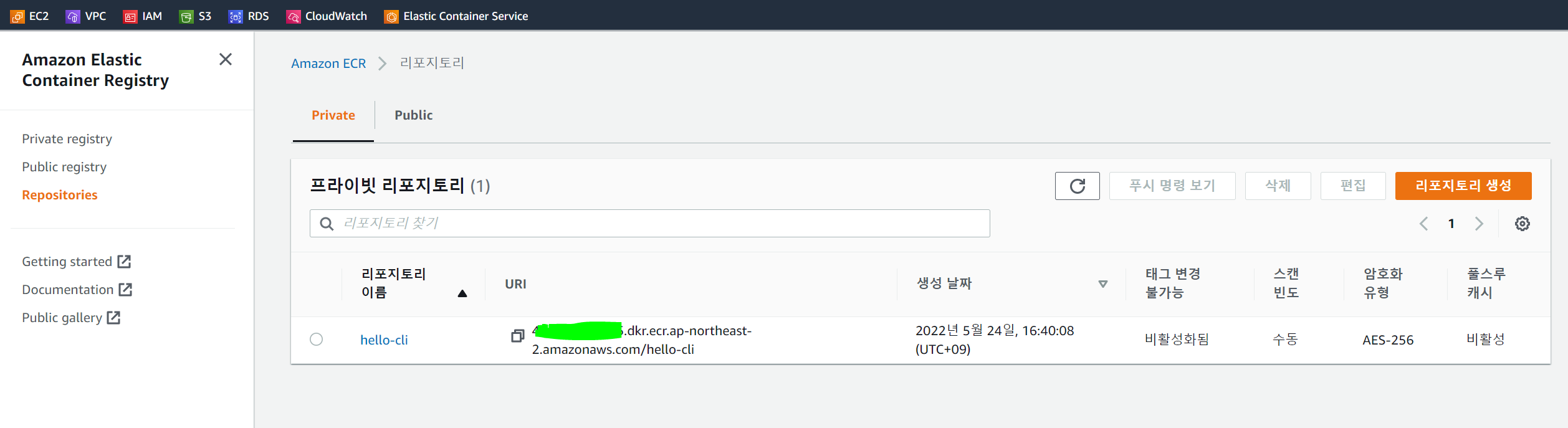 aws ecr create-repository --repository-name hello-cli --region ap-northeast-2