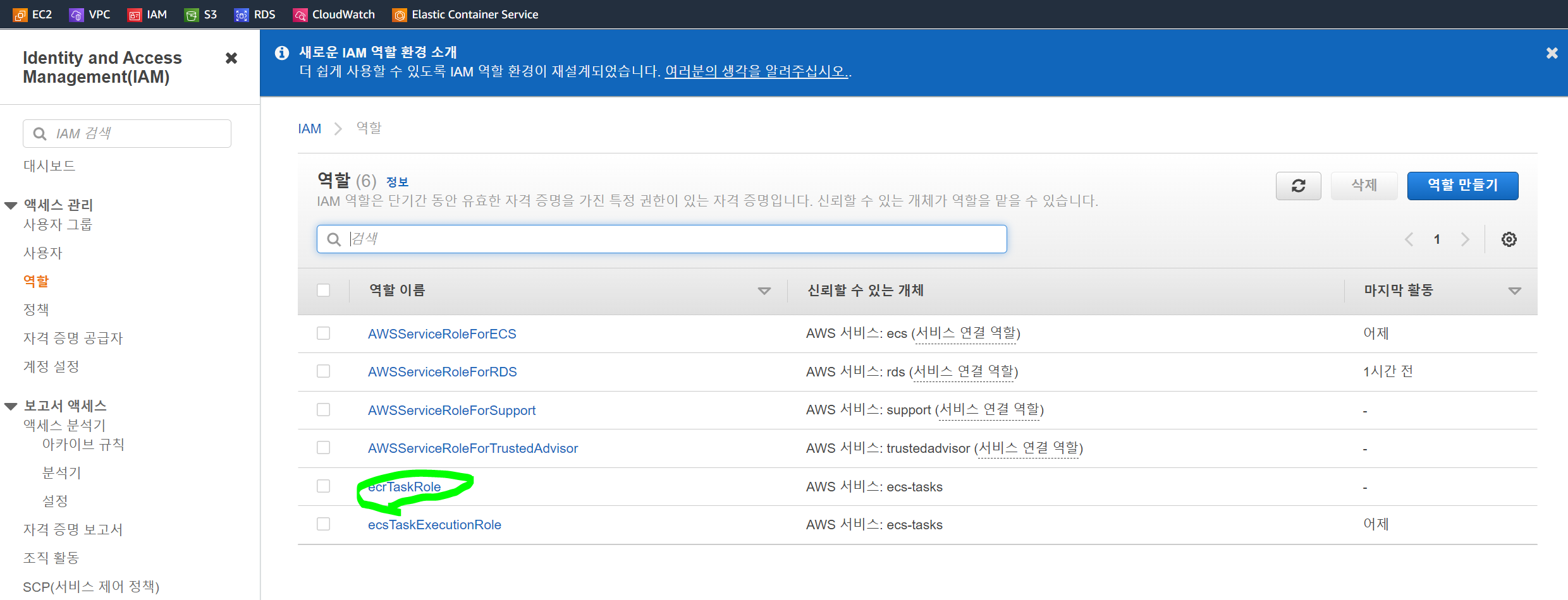 IAM에서 역할이 잘 생성되었음을 확인할 수 있다.