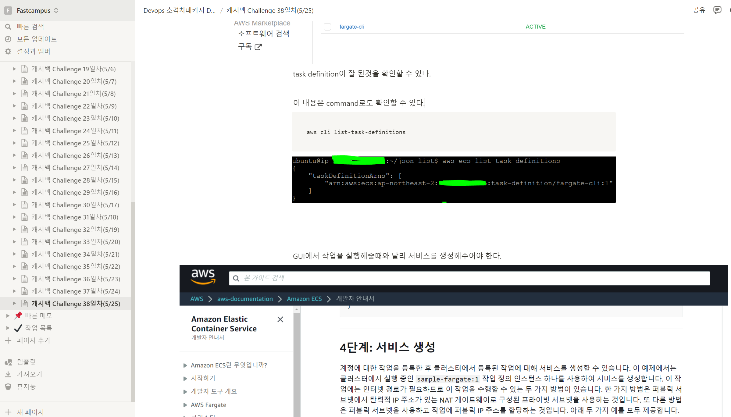 AWS Cli를 활용해서 fargate cluster를 생성하고 서비스를 실행해주는 클립을 수강하는식으로 챌린지를 진행하였다.
