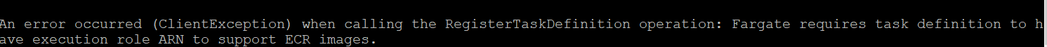 task definition file과 연관된 task1.json에서 ECR에 접근할 수 있는 IAM의 역할로 지정해준 내용을 넣어주면된다. “executionRoleArn”:”ecrTaskRole” json파일에 추가한다.
