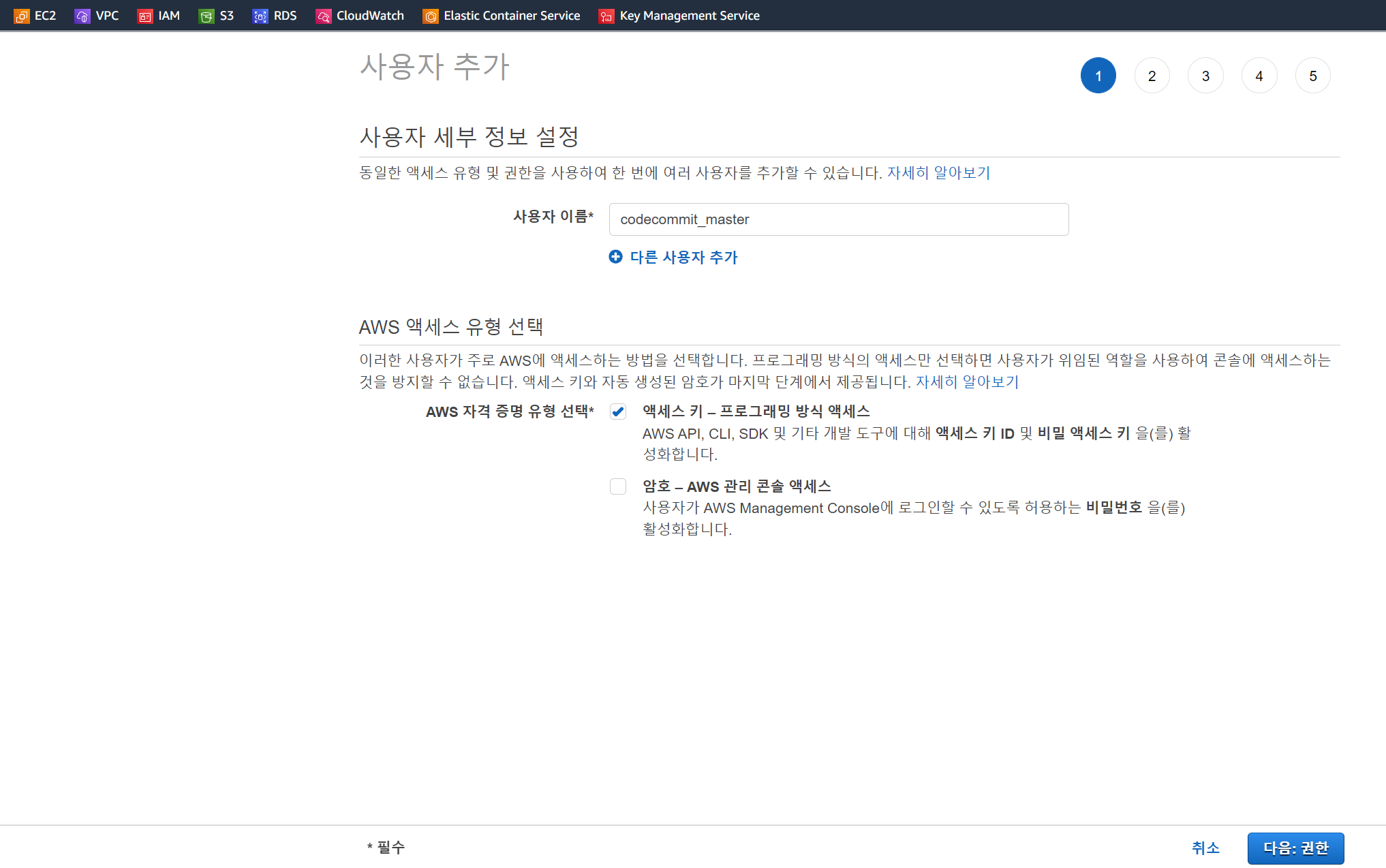 ⇒ CodeCommit을 사용하기 위해서는 IAM 유저를 설정해주어야한다.