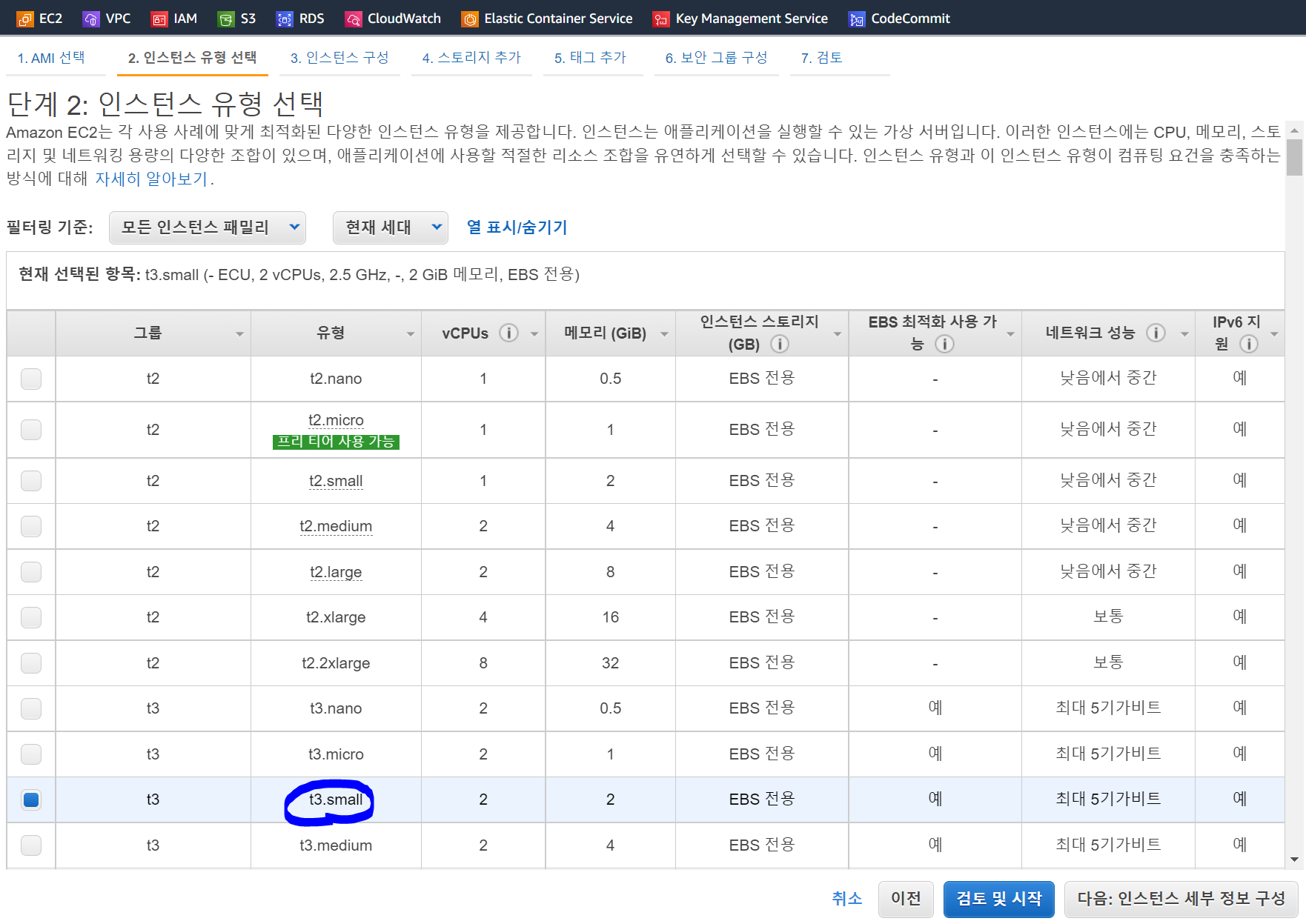 이후에 k8s쪽 파트에서 minukube를 사용할때 2core CPU, 2GB RAM 이상의 사용을 요구할 것이기에 t3.small Insance 사용을 권장한다고한다. Free tier는 아니지만 24시간동안 30일 가정하면 1달에 20달러정도 청구된다고 하는데, Instance를 Stop해가면서 사용할시에는 많이 줄어든다고 한다.