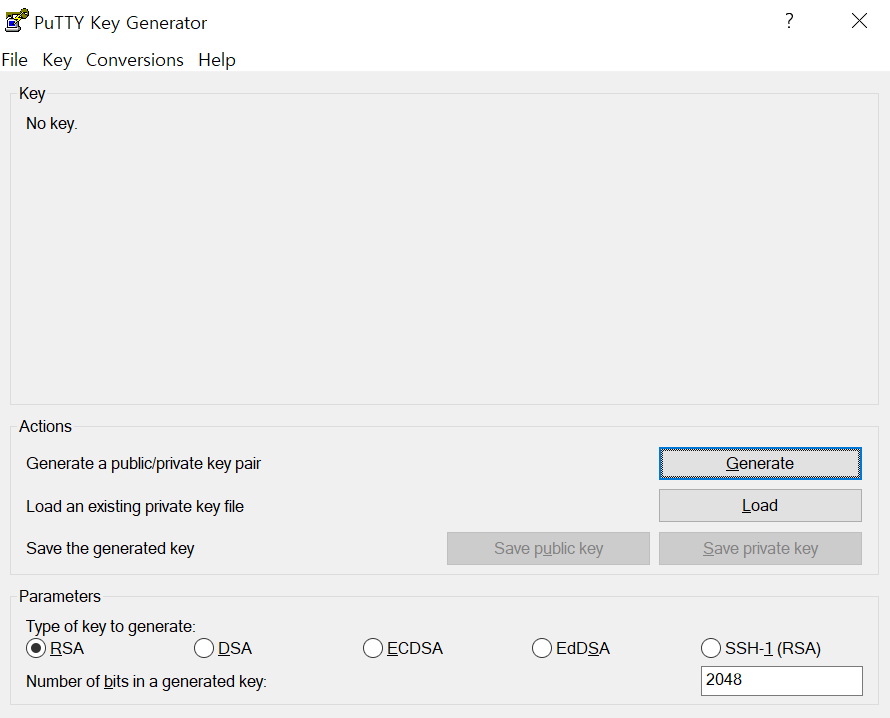 Load 버튼으로 ppk 파일을 불러온 뒤 상단의 Conversions > Export OpenSSH Key 를 선택 후 .pem 파일로 저장한다.