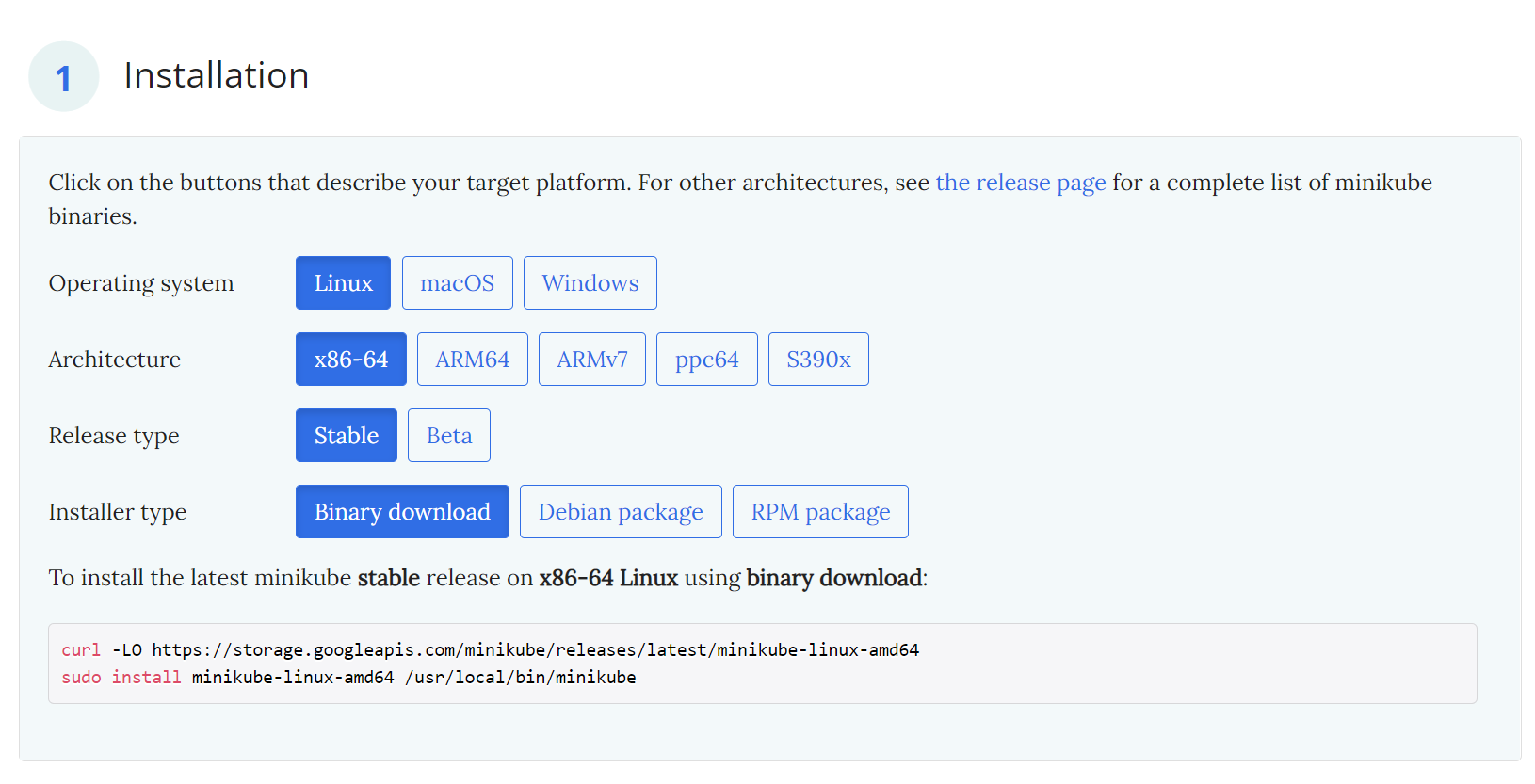 curl -LO <https://storage.googleapis.com/minikube/releases/latest/minikube-linux-amd64>