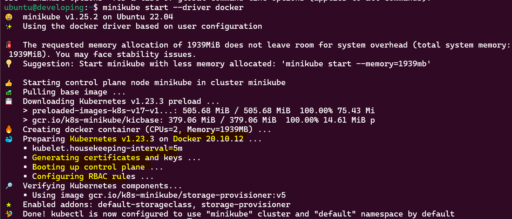 - 드라이버(driver)를 선택하여 원하는 가상환경(docker,podman,visturalbox,parallels,vmware,hyperkit 등) 에서 구성 가능