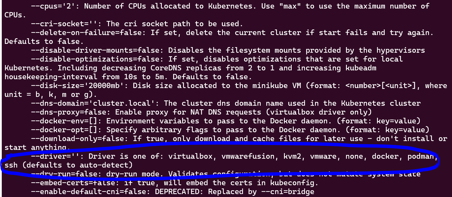 minikube에서 driver과 관련된 option이있다. 여기서 docker를 설정해주도록 하자.