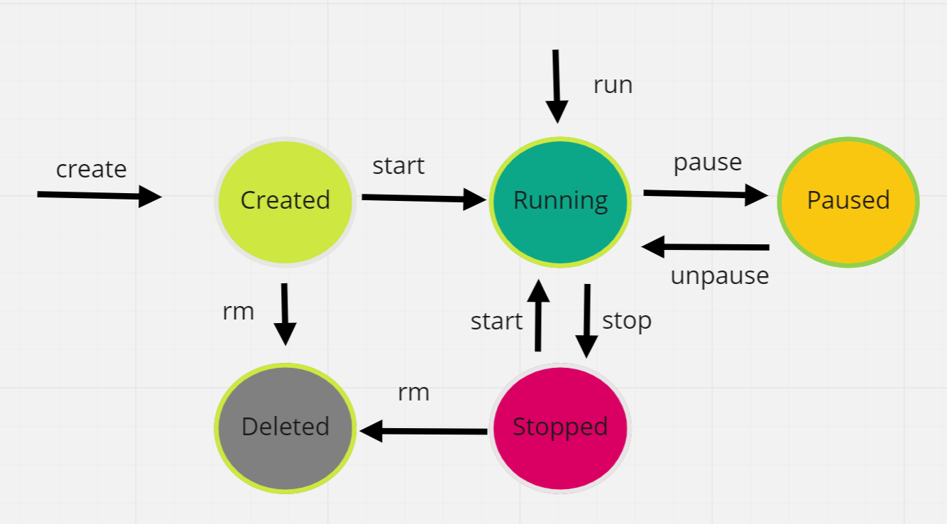 도커의 경우 실행상태가 되는 방법은 2가지가 존재한다. docker run명령어를 통해 실행하는 방법이 있고, create명령어를 통해 컨테이너를 만들고 start해주어 실행하는 방법이 있다.