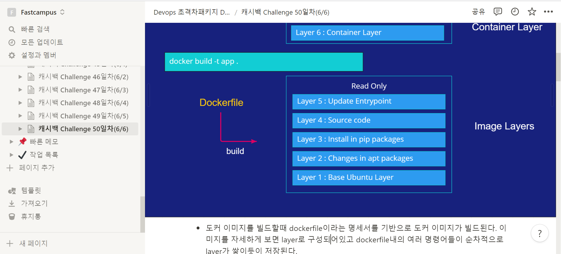 ⇒ 우분투 운영체제에서 필요로하는 패키지들을 설치해주는 내용이 layer2에 쌓이며,