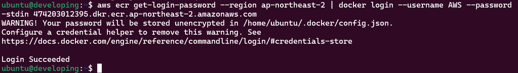 Login Succeded가 출력되면 정상적으로 docker hub에 로그인이 되었다.