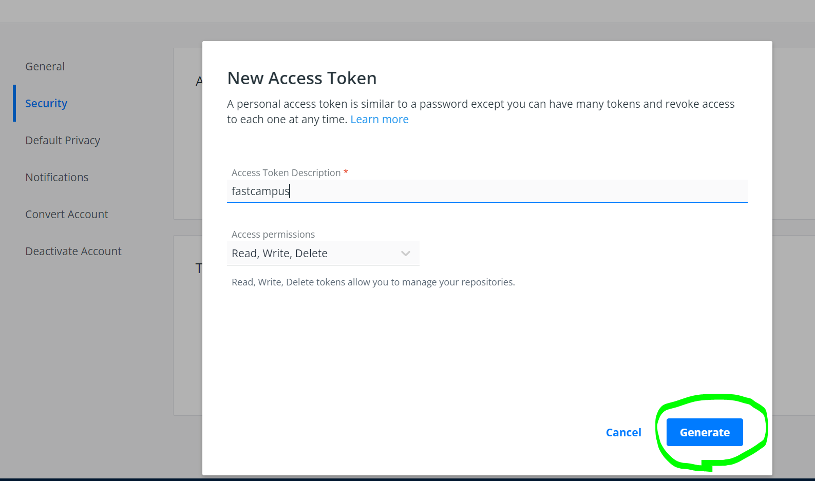 Access Permission 정도를 설정해주고 generate를 선택한다.