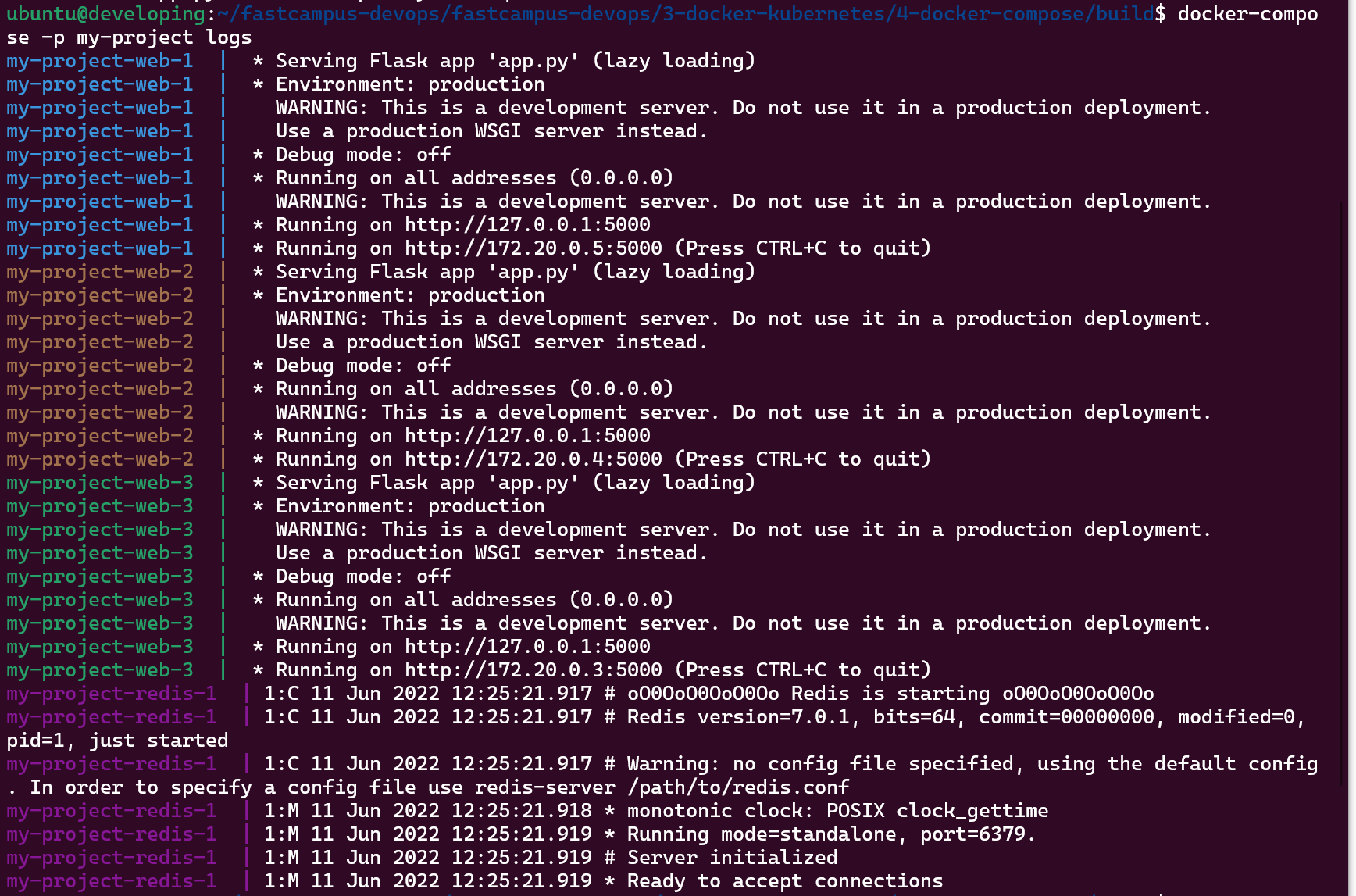 다른예로 build-redis-1은 build는 프로젝트명, redis는 서비스명, 1은 컨테이너 index라고 할 수 있다.