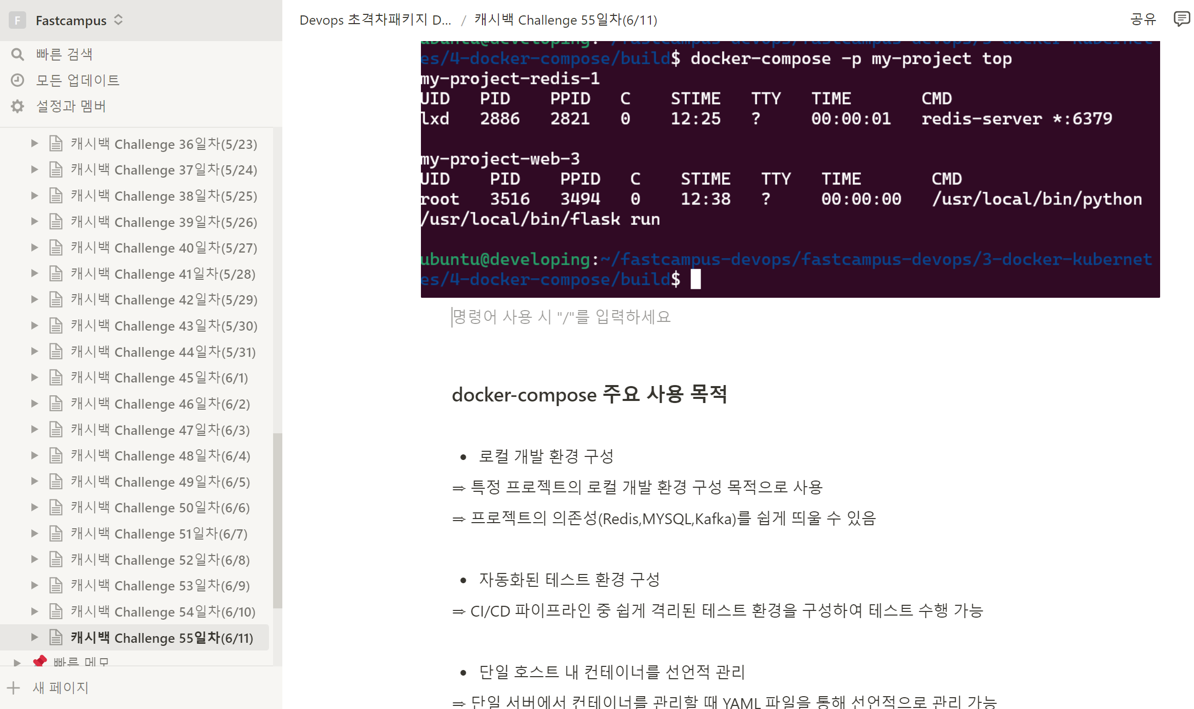 - 도커 컴포즈에서 다루는 워크스페이스 단위