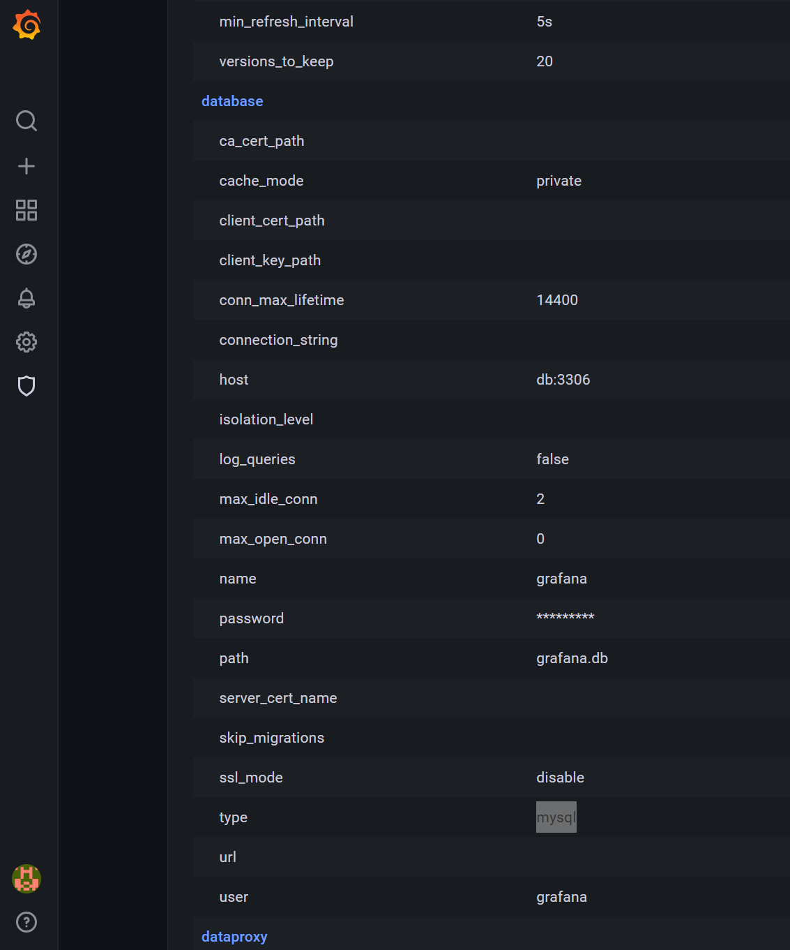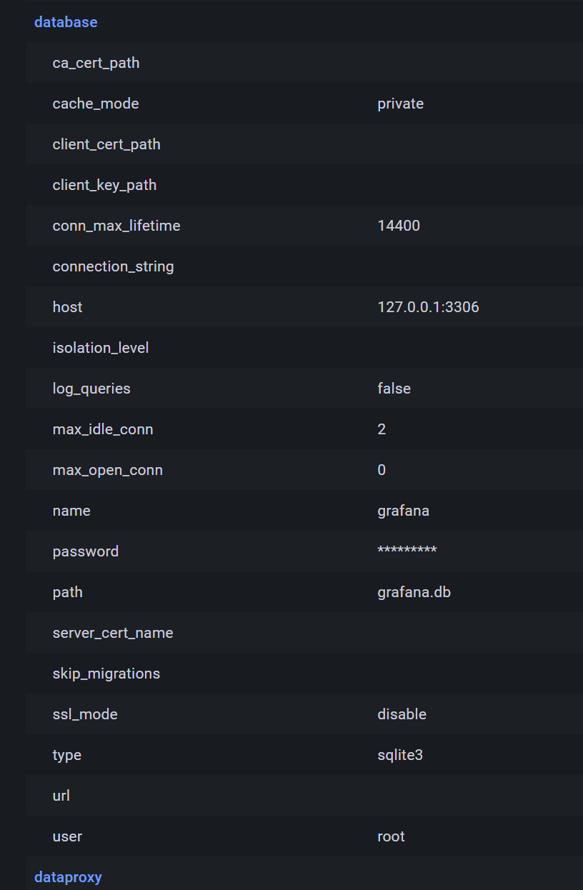 grafana.ini 를 확인해보면 database에 대한 내용이 설정되어있는 것을 확인할 수 있다.