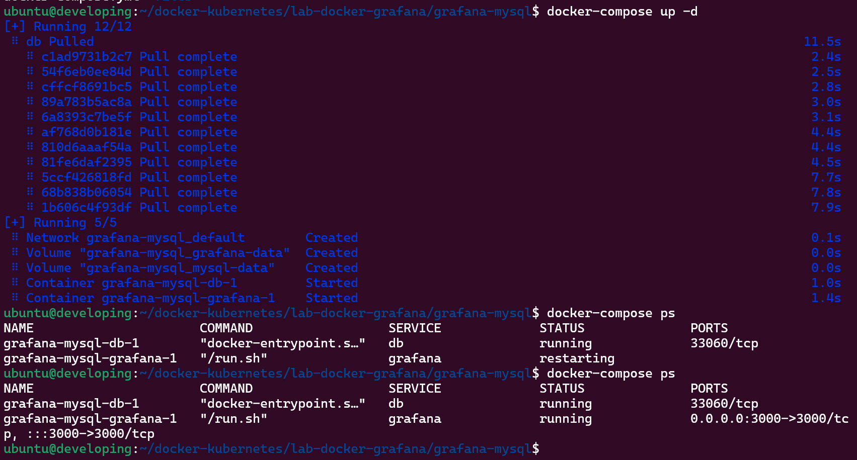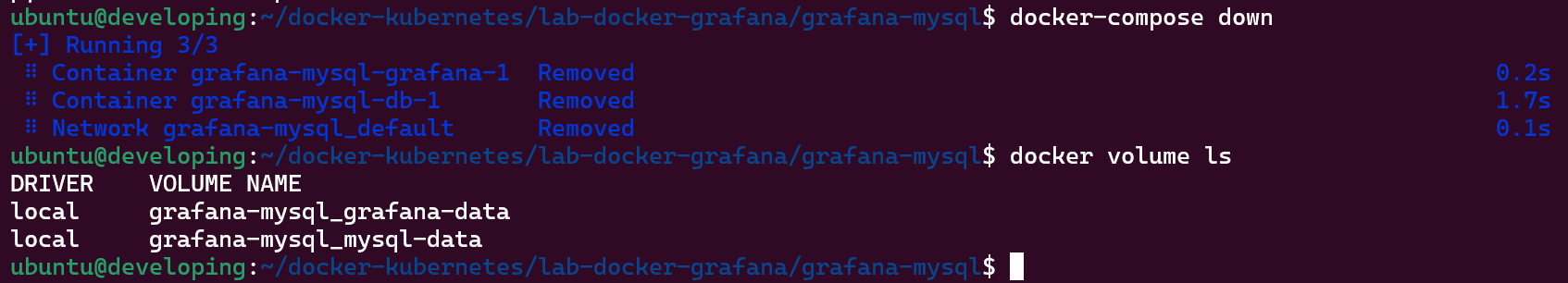 grafana만 존재하던 내용의 컨테이너는 전부 제거해주고 mysql을 포함한 내용쪽으로 넘어가주자.