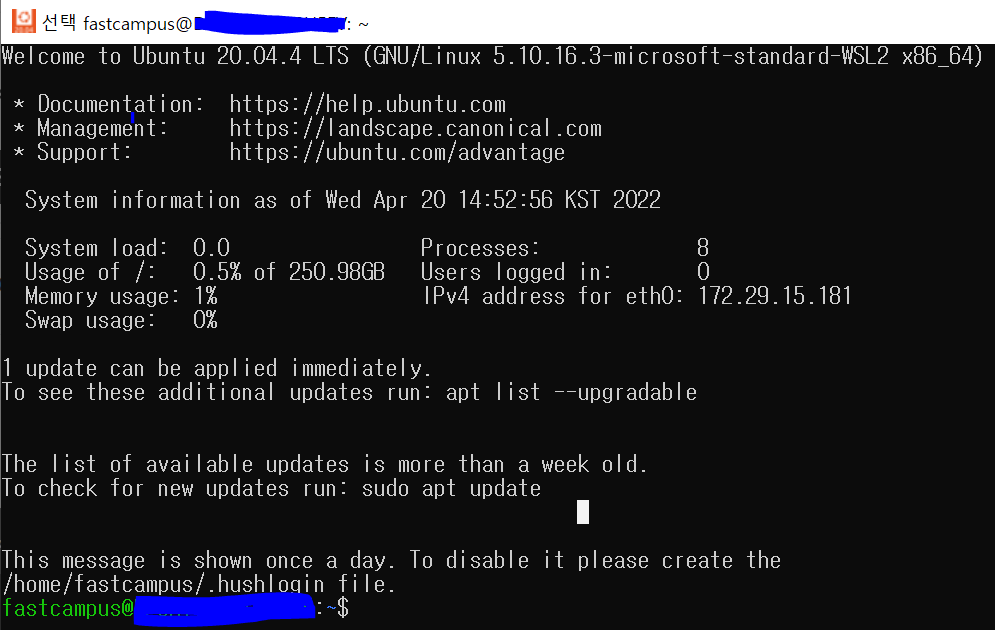 5. ubuntu shell의 정상적인 접속을 확인한다.