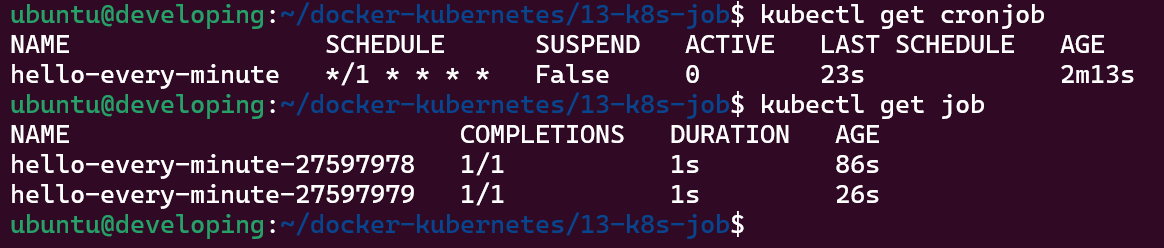 CronJob이 Job을 감싸고, Job이 Pod를 감싸는 것으로 이해하면 된다.