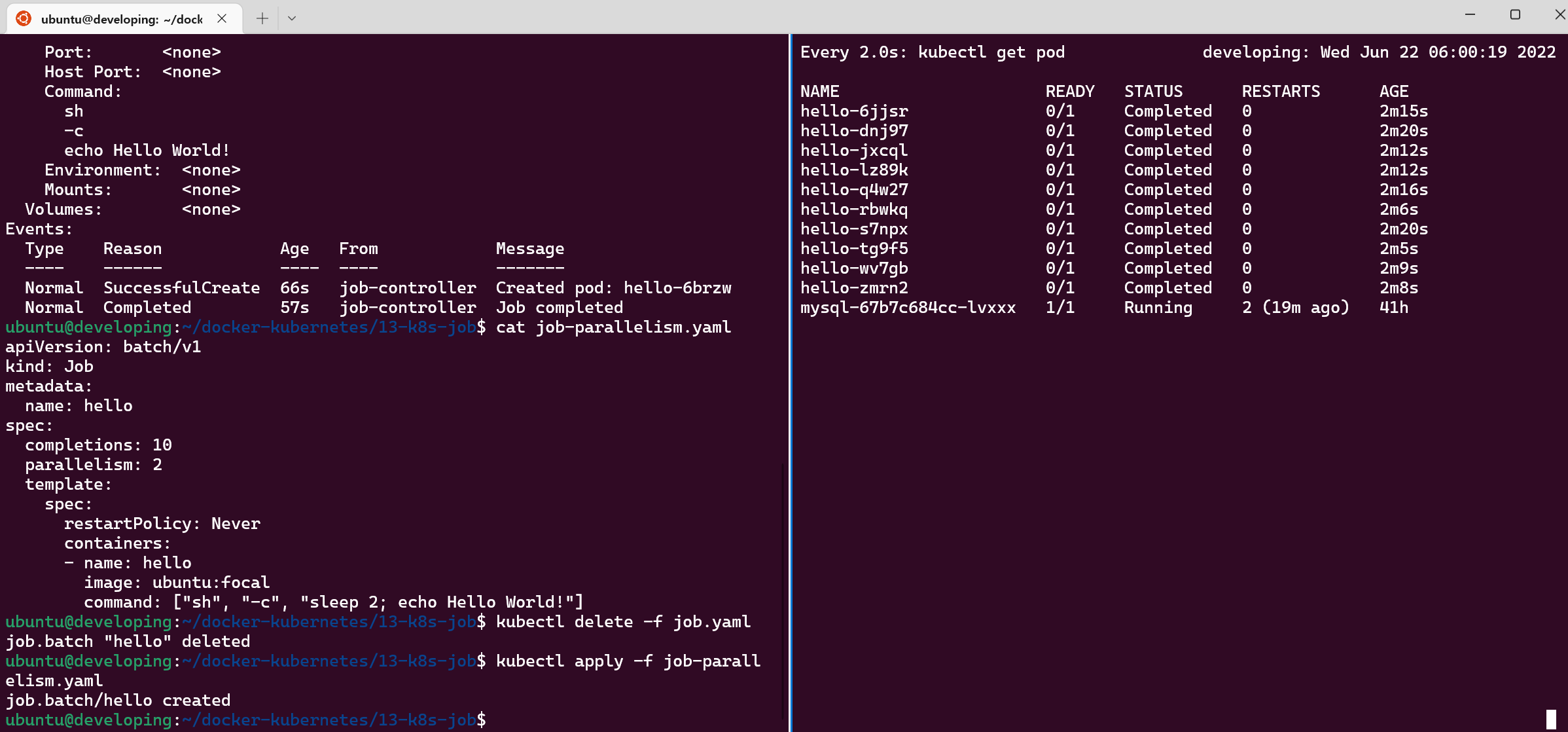 - Pod의 상태가 Running이 아닌 Completed가 되는 것이 최종 상태