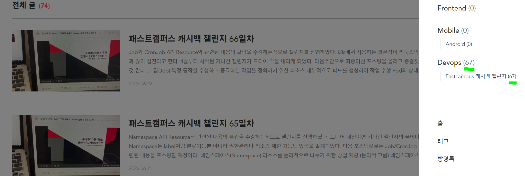정말 뛰어나신 다른 분들의 블로그를 보면서 반성을 많이 했었다. '저 분은 저래서 된 거구나..'를 엄청 체감했고 내가 공부해야 하는 방향에 대해 꽤 많이 고민하게 되었다. 오래간 잠들어있던 블로그에 챌린지로 인해 반강제적으로라도 66일간의 기록을 지속해서 남기다 보니, 블로그의 방향성에 대해서도 따로 생각을 하였었다. 기업의 Tech Blog review 포스팅이나 클린 코드 책 리뷰, 알고리즘 문제 답안 포스팅, 프로그래밍 언어 공부 포스팅 정도를 생각하고 있다.(Notion에 잠들어있는 것을 블로그로 이사시켜올지는 고민중이다..)