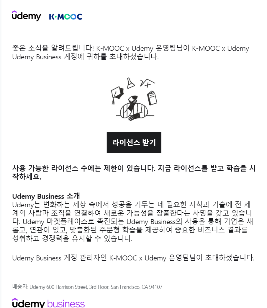 해당 메일이 오면 가입을 진행해주고 https://kmooc.udemy.com 에서 수강이 가능해진다.